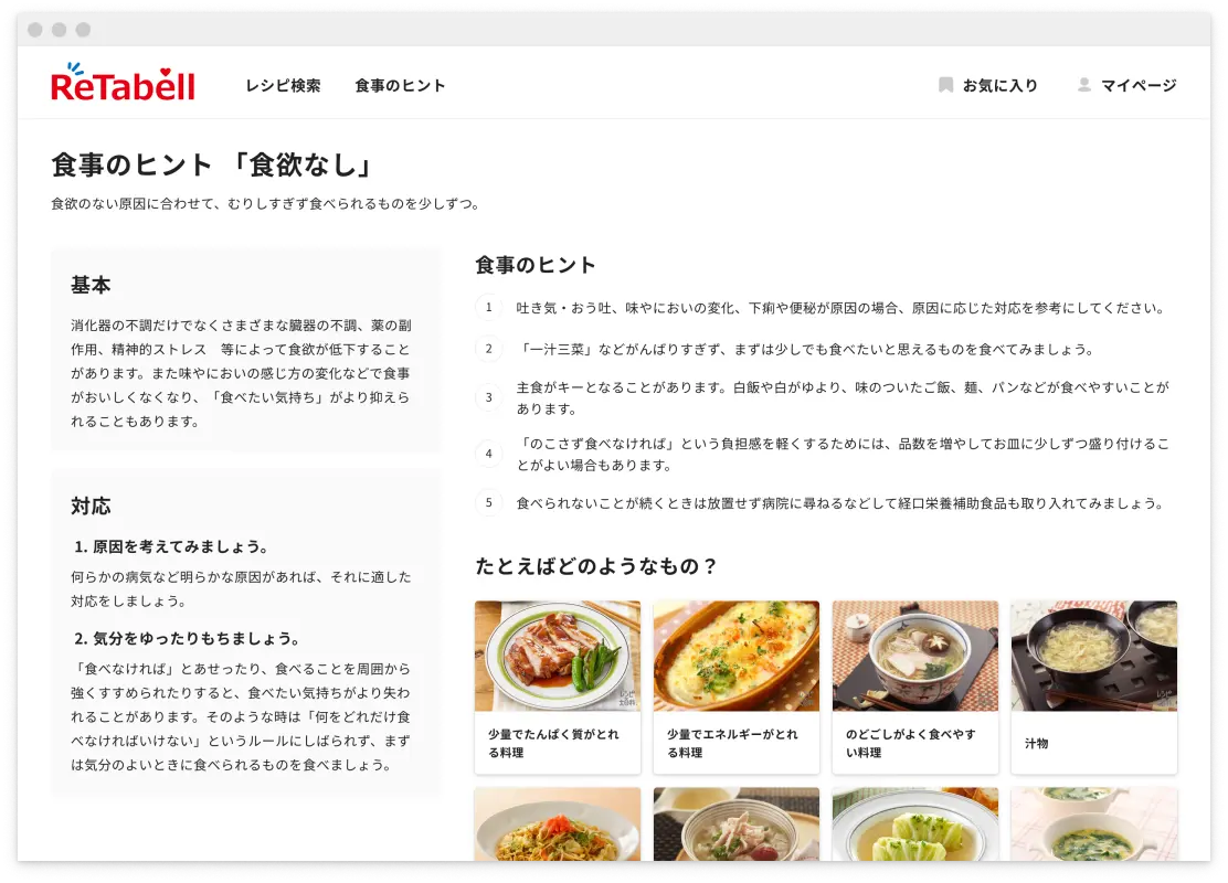 摂食の悩みを持つ患者さんの計画策定は大変です。ReTabellを使いだして、具体的なレシピや食事のヒントを記載する際に参照して効率化できました!