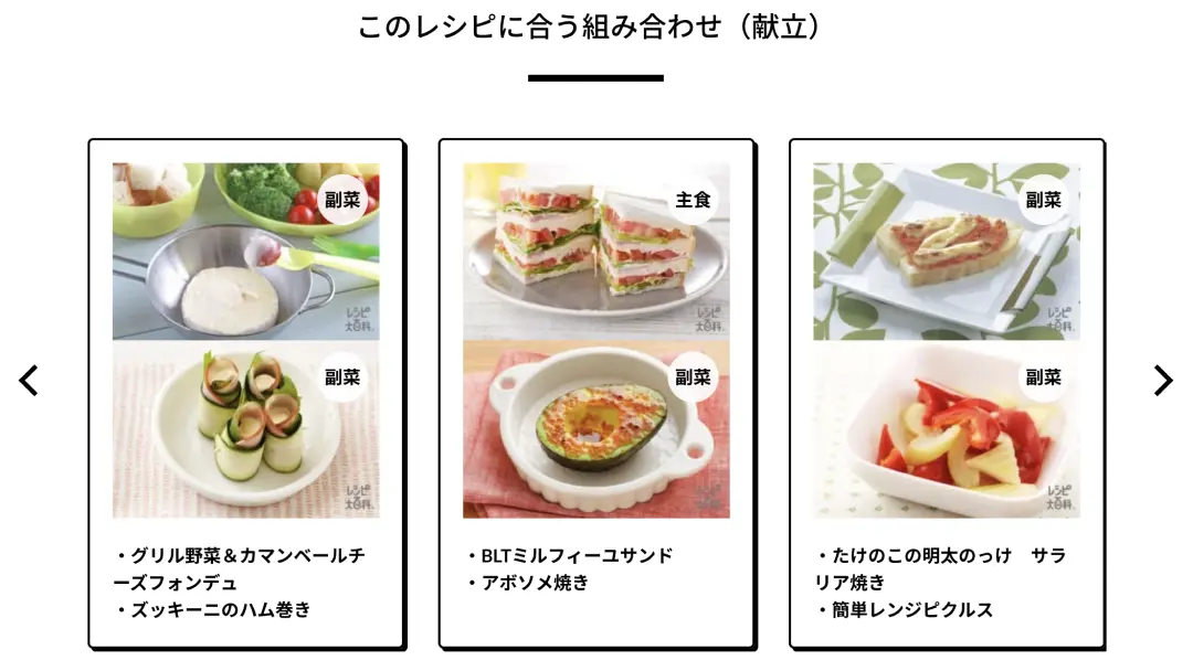 検索したレシピと組み合わせて、患者さんだけでなく、そのご家族も一緒に食べられる献立を紹介します。患者さんのQOL向上、介助者の調理軽減を支援します。